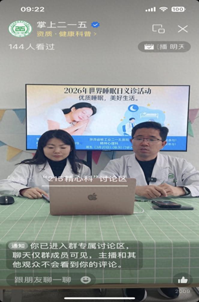 2026年3月21日是第26个世界睡眠日,为深入普及睡眠健康知识,切实提升群众健康素养,3月19日至20日,陕西省核工业二一五医院精神心理科张帆主任与范红杰护士长精心策划并组织开展系列睡眠公益活动,通过线上直播、基层义诊、院内筛查等形式,将睡眠健康服务送到市民身边。