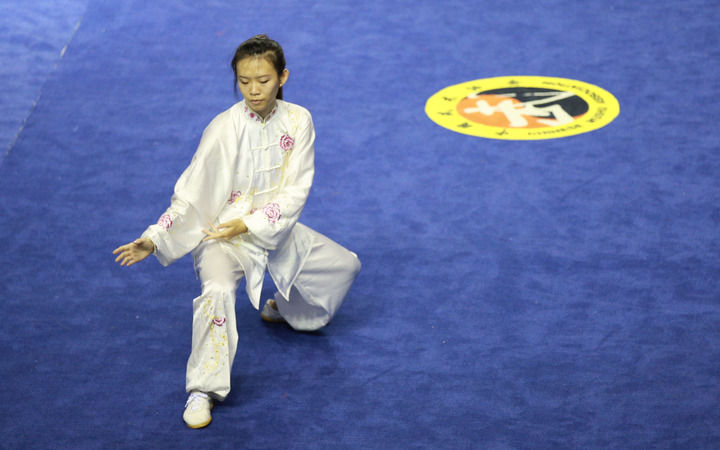 2014年11月1日,选手在四川成都举行的首届世界太极拳锦标赛中。新华社发(罗国杨摄)