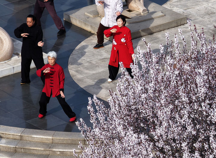 “春分讲究阴阳平衡,而太极拳主张‘一阴一阳之谓道’,两者在理念上是相通的。”4岁起便习拳的“90后”陈家沟人李灵慧说,“能在这样的节气和世界各地的人一起习练,我觉得很有意义。”