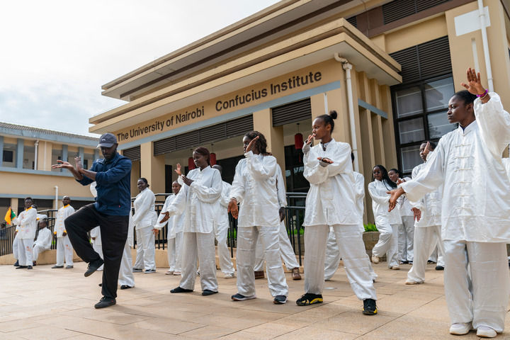 2026年3月18日,当地学生在肯尼亚内罗毕大学孔子学院习练太极拳。新华社记者 谢剑飞 摄