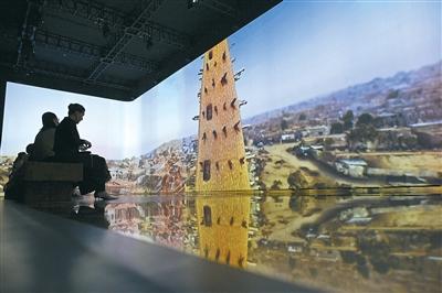 2024年6月6日,由中国国家博物馆与“冲突地区遗产保护国际联盟”共同主办的“守护与重光”展览在北京开幕。展览分为“遗产之殇”“联盟的诞生和使命”“遗产守护”“遗产与人”“遗产之美”5个部分,通过大量第一手珍贵影像资料和参与者的口述,全景呈现世界濒危文化遗产现状和“冲突地区遗产保护国际联盟”成立至今开展的大量卓有成效的工作,展示文化遗产保护成果。图为观众在体验“沉浸式文化遗产之旅”。