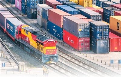 一列满载集装箱的中欧班列货物列车在贵州贵阳国际陆港都拉营站等待发车。