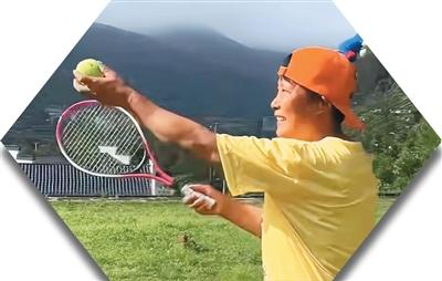 61岁的银发博主潮姨体验打网球。