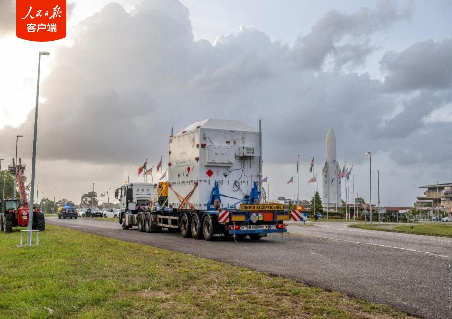 “微笑卫星”包装箱从库鲁码头运输到发射场(图片来源:ESA)