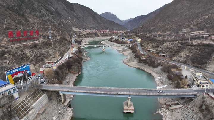 这是2026年2月8日拍摄的西藏昌都市江达县岗托村周边风光(无人机照片)。新华社记者 党黎 摄
