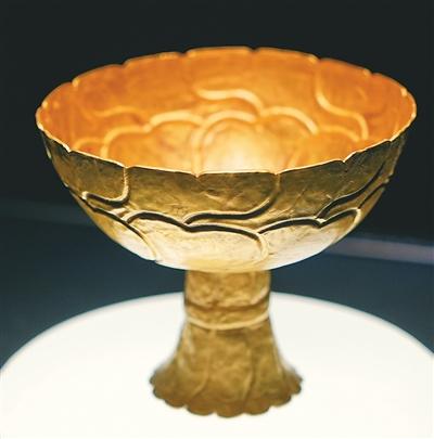 明代金高足杯。
