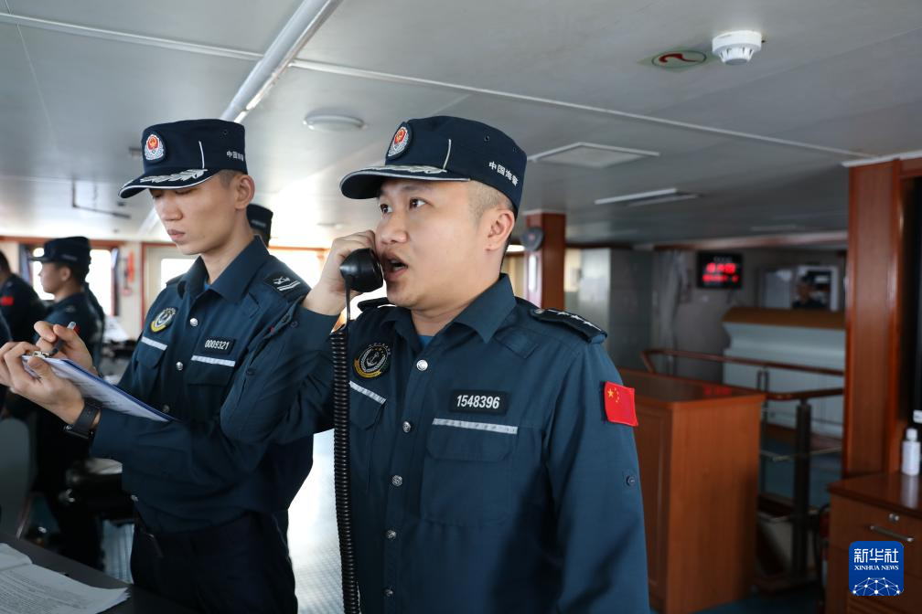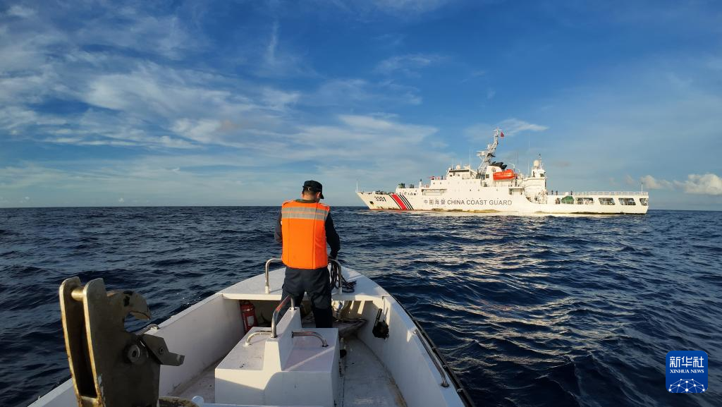 2月14日,中国海警万山舰编队所属舰艇在黄岩岛附近海域开展巡逻任务。