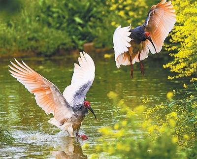 每年4月1日是国际爱鸟日。“朱鹮之乡”陕西省汉中市洋县近日迎来朱鹮繁育季,在汉中朱鹮国家级自然保护区朱鹮人工繁育中心周边村落的油菜花田与林间,野生朱鹮衔枝筑巢、觅食嬉戏的身影随处可见。