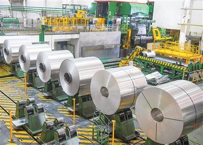 在河南省洛阳市新安县的洛阳万基铝加工有限公司车间,工人正生产一批出口海外的动力电池软包铝箔。