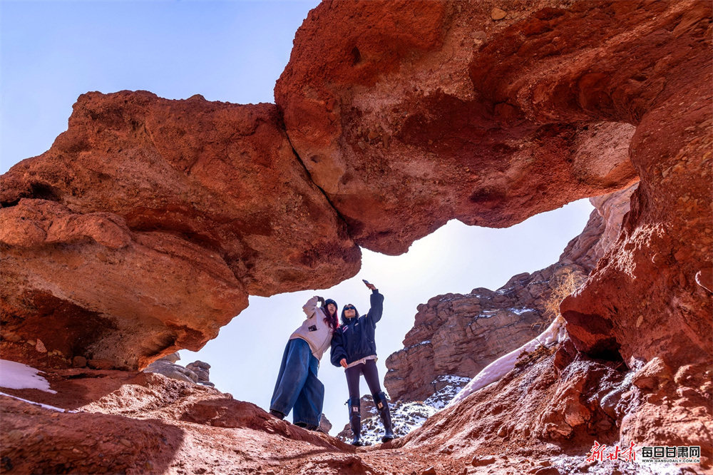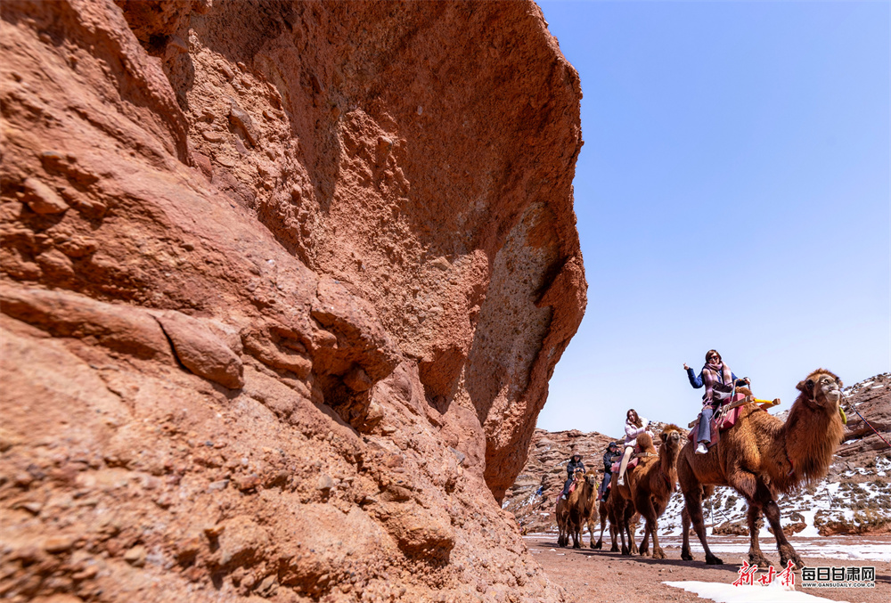 仲春时节,张掖平山湖大峡谷风光壮美。游客漫步穿行在雄奇的红层峡谷间,沉浸式感受亿万年地质遗迹造就的苍茫壮阔,触摸岁月雕琢的自然肌理,邂逅大自然鬼斧神工的地质奇观。