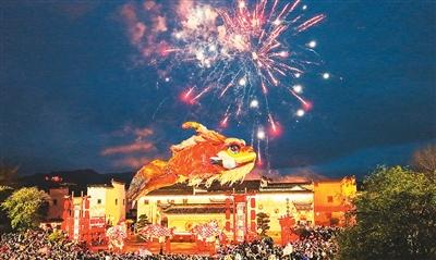 夜幕降临,黄山南麓的唐模古村里,鳌鱼花灯腾跃升空、气势磅礴,盏盏鱼灯溯溪而行、灵动婉转,引得游客追随观赏、祈愿欢歌。