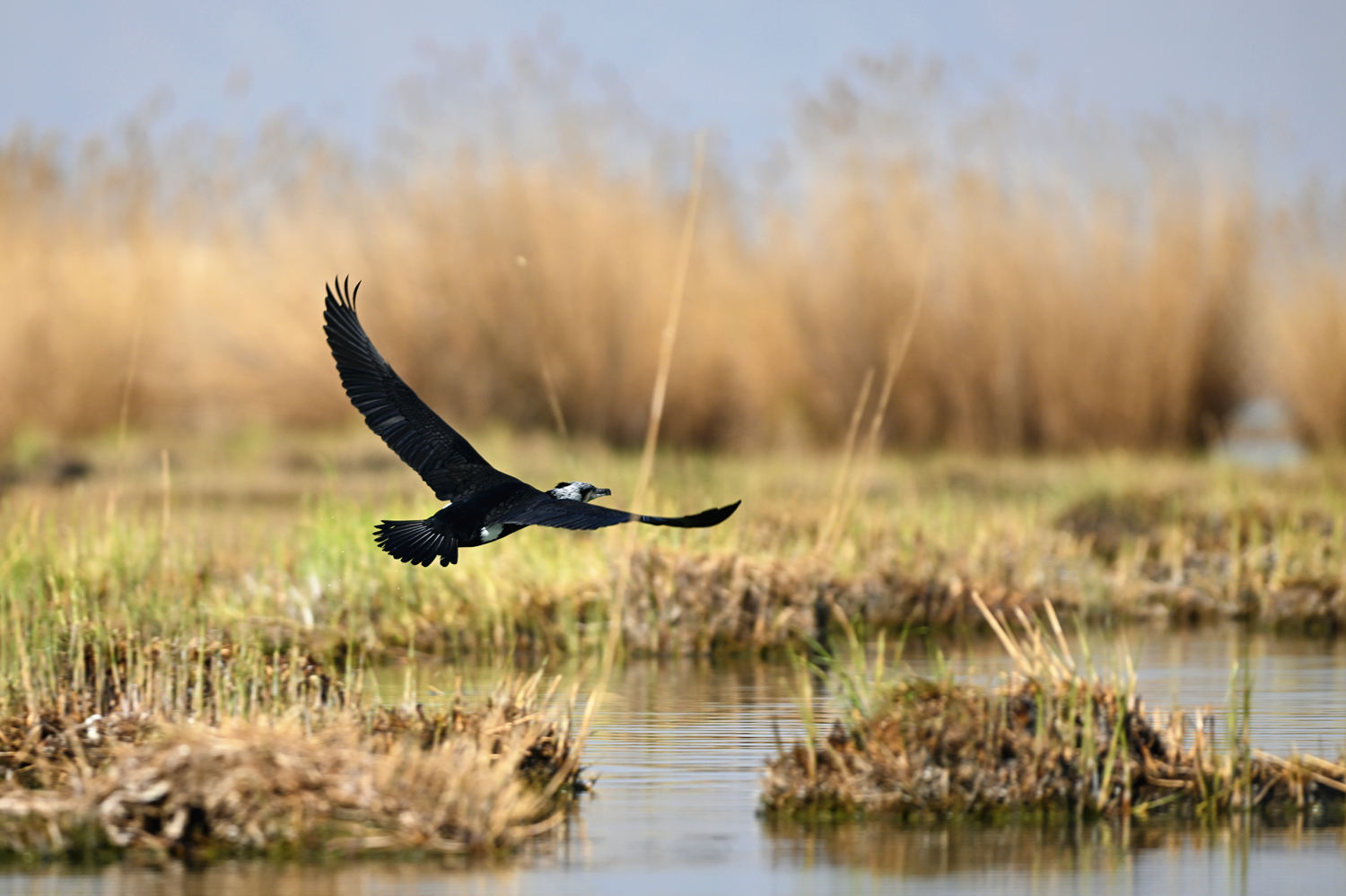 4月7日,一只鸬鹚低空掠过水面。近年来,宁夏沙湖景区通过退渔还湖、退耕还湿、清淤疏浚、水系连通等工程,保留水域、沼泽、草甸、荒漠等多元生态板块,为不同鸟类营造多层级栖息环境。最新数据显示,沙湖鸟类种类从2011年的198种增加至目前的216种。沙湖已成为东方白鹳、小天鹅、白琵鹭等珍稀鸟类的重要迁徙驿站。 宁夏日报报业集团全媒体见习记者 乔新宇 实习生 马国福 摄