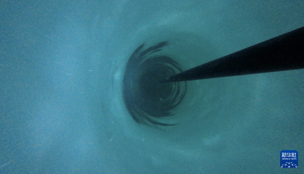 我国首次南极冰层热水钻探试验钻孔画面。(中国第42次南极考察队供图)