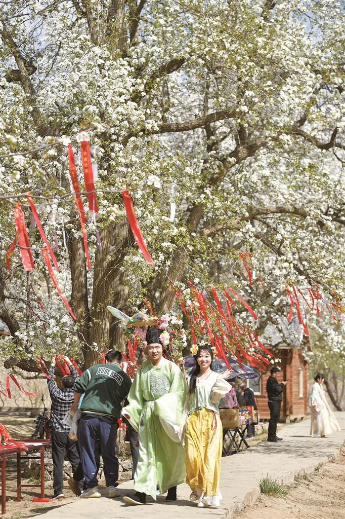 “这里靠近母亲河,梨园仿佛无边无际,百年古树屹立不倒。”来自香港的游客韩钰琪刚下车,就被眼前的景象深深吸引。她举着手机原地转了一圈,镜头里是铺天盖地的白,不禁赞叹:“这是在其他地方看不到的景色。”
