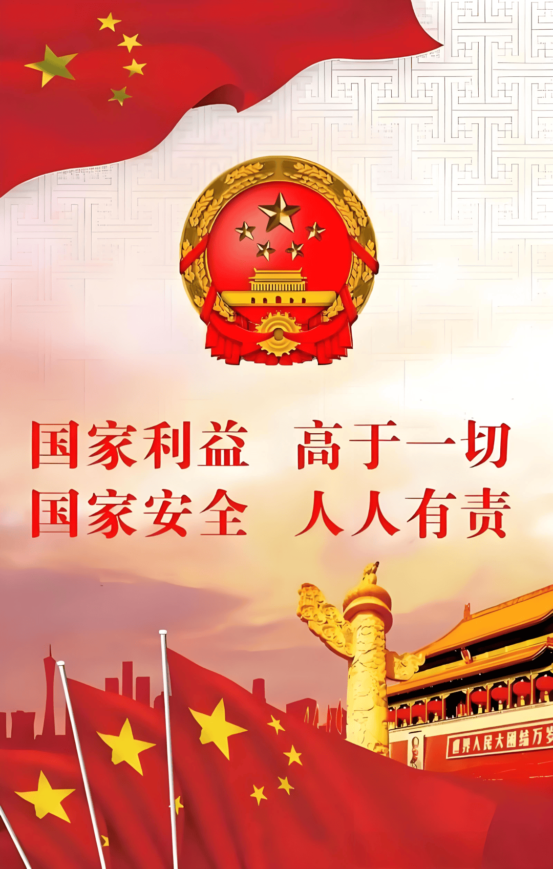 家是最小国,国是千万家。国家安全,始于点滴,责在全民。2026年全民国家安全教育日,让我们携手并肩,把国家安全意识根植于心、落实于行,以人人有责、人人尽责、人人享有的实际行动,筑牢国家安全的铜墙铁壁,守护山河无恙、国泰民安,为国家长治久安、民族复兴伟业贡献自己的一份力量!