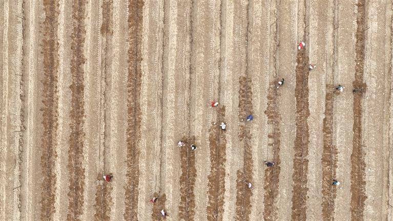 闽宁镇立兰酒庄基地里,务工热潮同样高涨。“最近是用工高峰期,每天有二三十人进场,以原隆村及周边村民为主。”酒庄技术员温建军说,1200亩葡萄园从3月18日展藤,目前已基本结束。“出土、展藤、打药同步推进,不误农时。”
