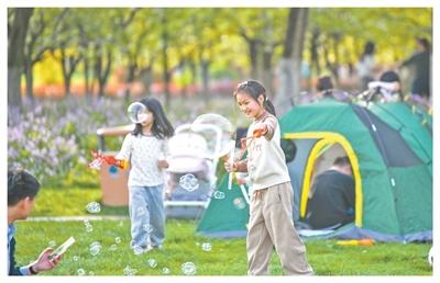 周末,北京南苑森林湿地公园游人如织,不少游客搭起帐篷,沉浸式感受春日之美。园内200多亩免费露营地推出大树环保彩绘、创意手作、春日市集等多元体验,游客可踏青赏花、嬉水涂鸦,也可品鉴美食、动手创作。60余个特色美食摊位,让春日露营踏青更有滋味。
