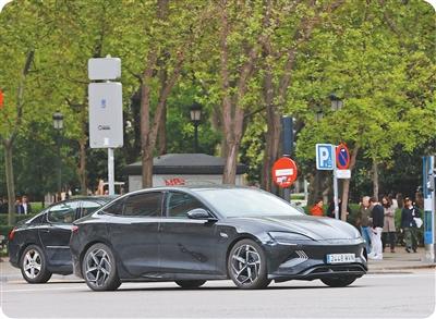 行驶在马德里街头的中国品牌电动汽车。