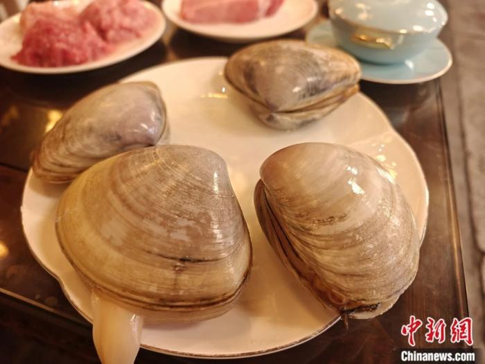 图为鸡汤汆海蚌。中新网记者 叶秋云 摄
