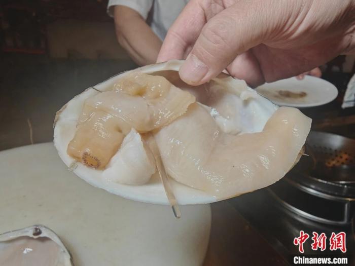图为处理后的漳港海蚌,“蚌针”清晰可见。中新网记者 叶秋云 摄