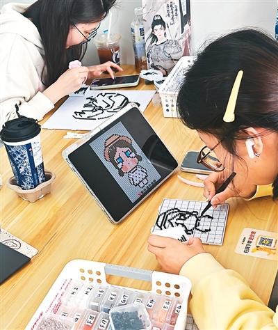 走进北京一家手作工坊,能看到这样的场景:年轻顾客围坐桌前,专注于手中的拼豆作品,一坐就是几小时。“拼豆让我可以放下手机,屏蔽外界乱七八糟的信息,专心只做一件事。”00后女孩西西说,她接触拼豆不到两个月,已经成了这项手工的“铁粉”。“当时觉得就是摆摆豆子,没想到一坐下来就停不下来。看着一颗颗小豆子变成完整的图案,特别有成就感。而且拼的时候不需要想太多,焦虑的情绪慢慢就缓解了。”