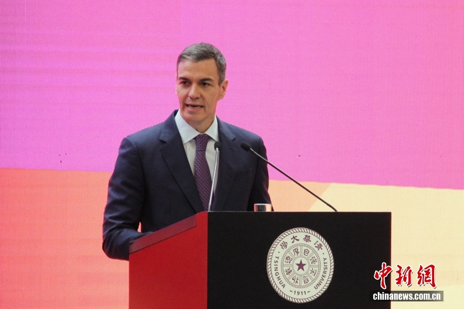 4月13日,北京,西班牙首相桑切斯在清华大学演讲。中新社记者 曾玥 摄