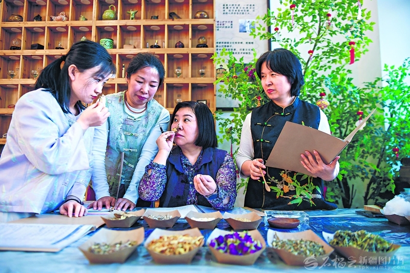 4月9日,张馨文(右二)和徒弟在研发新的香品。