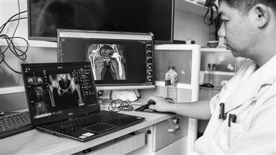 图为贵州省人民医院骨科医生通过AI软件进行髋关节置换手术的术前规划。资料图片