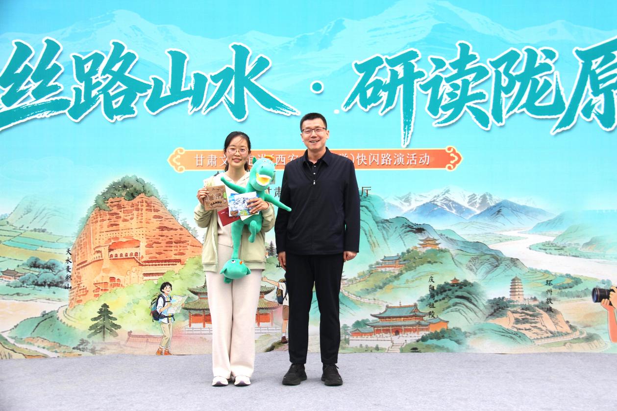 活动尾声,颁奖仪式隆重举行。甘肃省文旅厅党组成员、副厅长王治纲为一等奖获奖者颁奖;西安交通大学研究生院副院长、研工部部长、团委书记李利波,甘肃文旅产业集团有限公司副总经理金世胜分别为二等奖、三等奖获奖者颁奖。满载陇原心意的文创好礼,既是祝福,更是来自如意甘肃的真诚邀约。