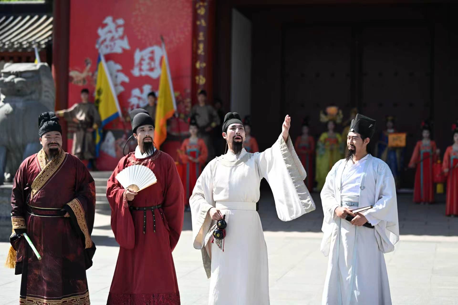 园内每日近百场沉浸式互动演出同步上演,《唐韵茶席》《科举》《舞林大会》《云翎雄风》等节目生动再现唐宫盛景。一幕幕鲜活场景次第铺展,让传统文化不再是静止的陈列,而是可感、可触、可参与的活态传承。