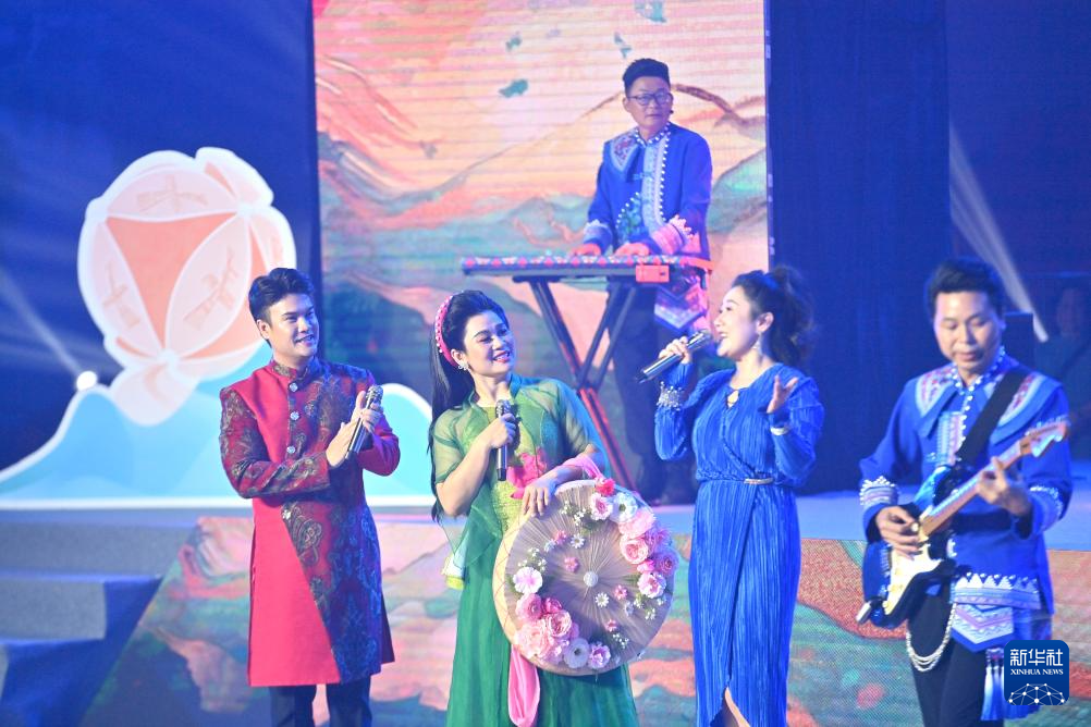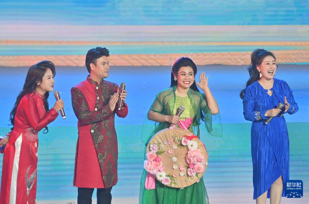 4月18日,在广西崇左市大新县,中越演员在中越边民大联欢晚会中唱歌。新华社记者 黄孝邦 摄
