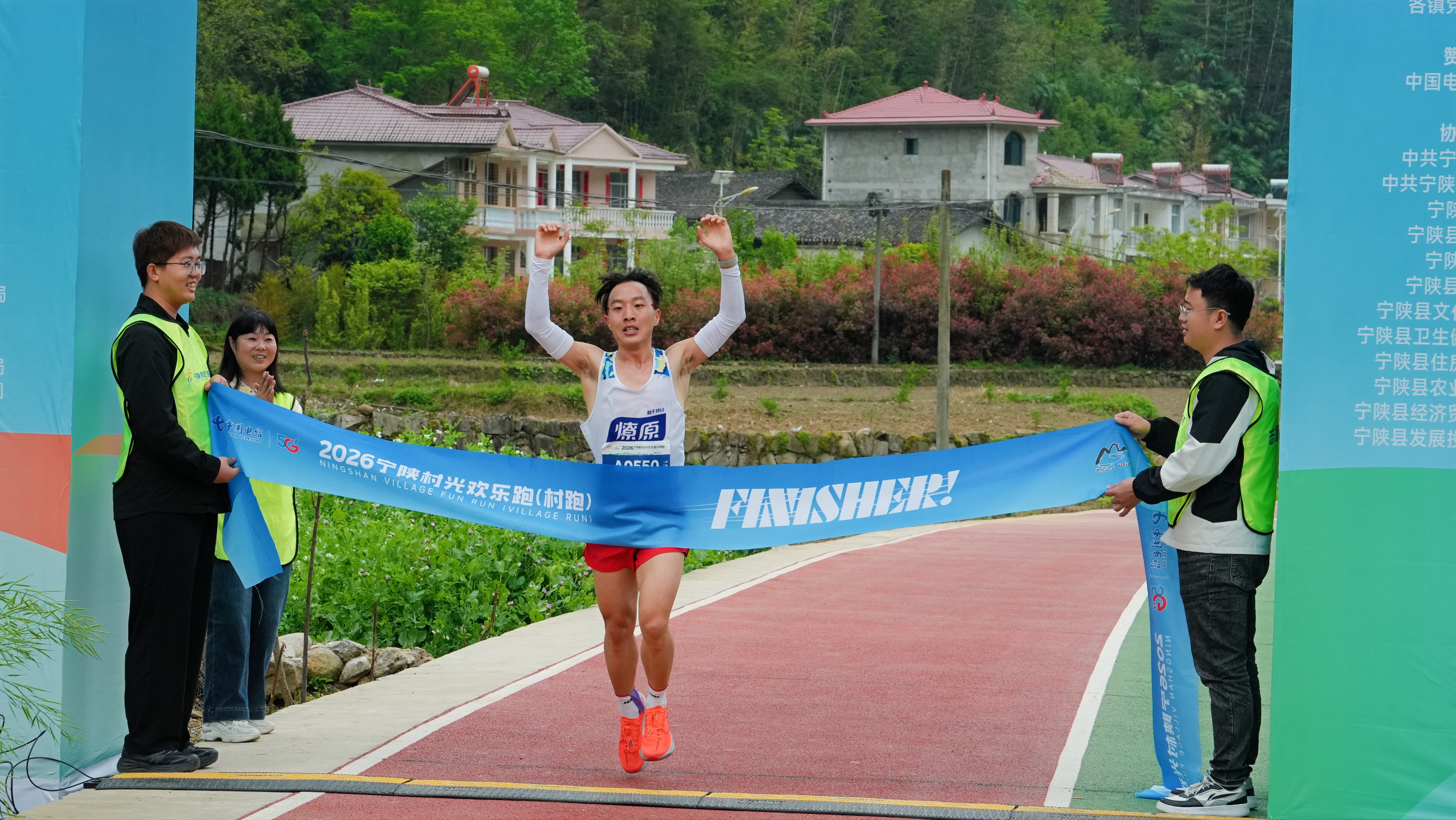 男子组第一名选手董美军说:“我是从甘肃兰州过来的,第一次来宁陕,感觉这边的风景非常好,今天的天气也很给力,赛道上志愿者很热情,我很荣幸获得了第一名,跑完之后看到有乡村集市,准备带一些特产回去给家人朋友尝一下,下次有比赛还会来参加。”