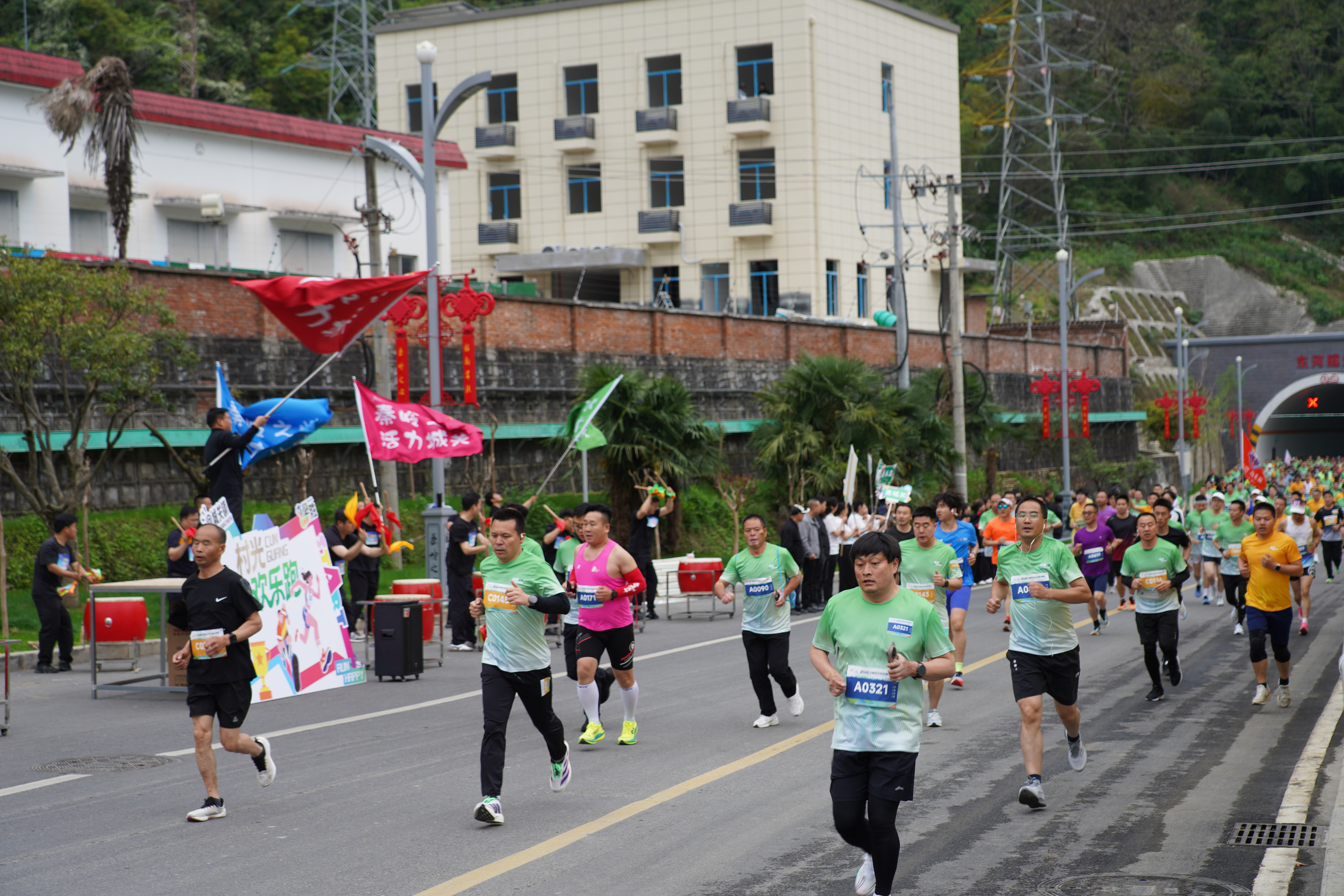“加油!加油!”赛道沿途设置多个补给点、医疗保障点,志愿者们全程坚守,提供服务。11个镇精心打造的特色宣传点,不仅有传统民俗节目表演,还有土蜂蜜、腊肉、食用菌等本地特产。