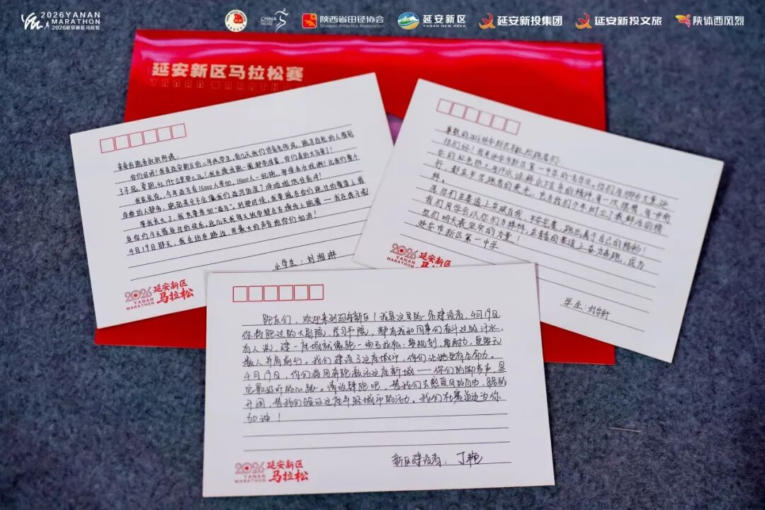 赛事以极致用心打造全方位参赛体验,让跑者感受圣地专属温暖。组委会特别准备13款手写暖心明信片,由城市建设者与学生亲笔书写祝福,字字真挚、句句温情,将延安的红色底蕴与人文温度送到每位跑者手中,让奔跑之路更有情怀、更有力量。