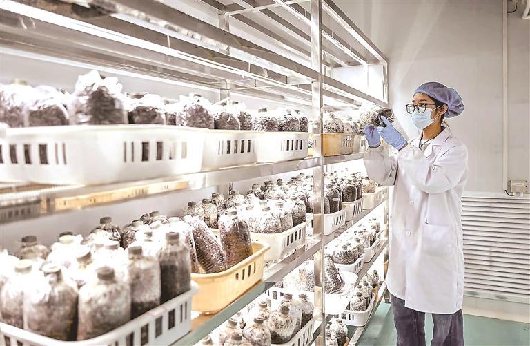 4月15日,位于石嘴山市大武口区宁夏食用菌资源与种质创新工程技术研究中心,技术人员正在菌种培养室观察食用菌原种生长情况。该中心通过引进与自主分离相结合的方式,目前已拥有64个食用菌品种,构建起从菌种培育到产品销售的完整产业链。 记者 王晓龙 白茹 摄