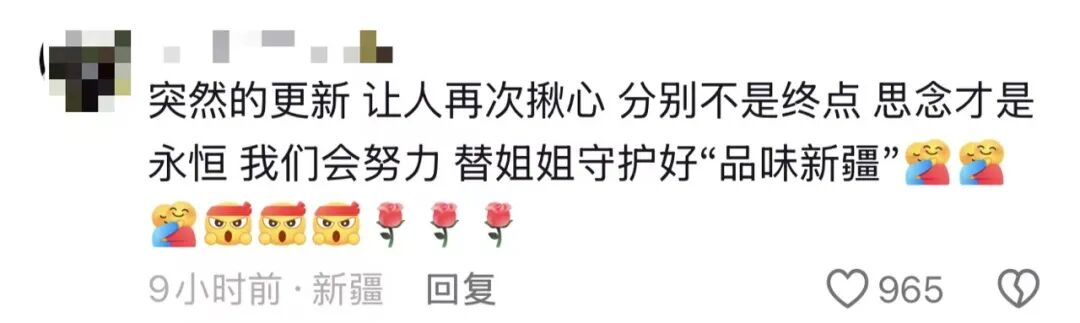贺娇龙的朋友圈、个人媒体平台里,最后几条动态依然是关于家乡新疆的推广宣传。“不是所有坚持都能抵御岁月,但若为热爱,便所向披靡。”