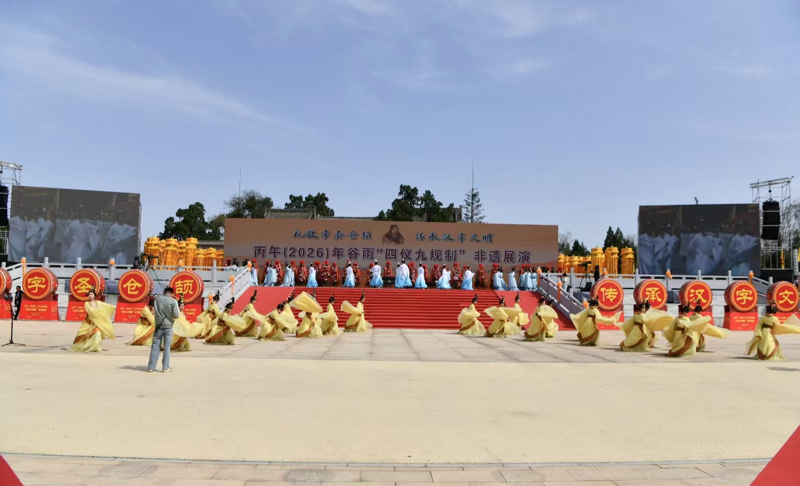 礼敬字圣仓颉·传承汉字文明。2026年4月20日,丙午年谷雨“四仪九规制”非遗展演在文字始祖仓颉故里——陕西省白水县举行。本次活动由中国文字学会、陕西旅游集团有限公司主办,陕西华清文化创意白水仓颉庙分公司、白水县仓颉文化研究会承办,主题为“礼敬字圣仓颉·传承汉字文明”。