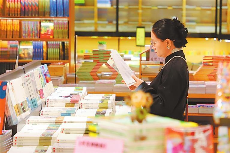 4月18日,在张掖市甘州区锦华书城,市民前来阅读、选购书籍。