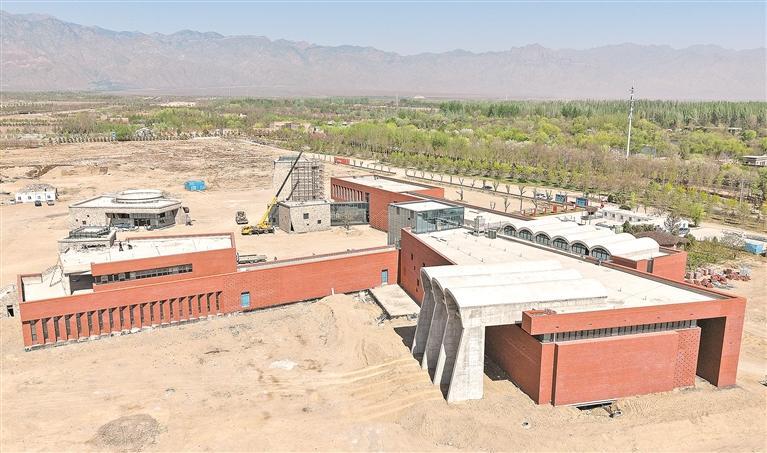 4月20日,贺兰山东麓葡萄酒产业项目宁夏玉麓酒庄加紧建设,全力推进景观打造及生产设备安装调试。该项目总投资近3亿元,设计年产能超1000吨。目前,酿酒车间、地下酒窖等核心设施已建成,4个主体建筑封顶,计划9月实现试运营。 记者 左鸣远 摄