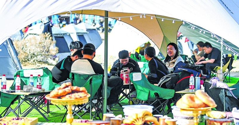 4月19日,游客在特色美食区品尝美食。4月18日至20日,“荒野极境 奇遇乌尔禾”2026新疆特种旅游节在克拉玛依市乌尔禾区世界魔鬼城景区举办,露营、演出、主题体验等活动精彩纷呈。石榴云/新疆日报 记者 汤永摄