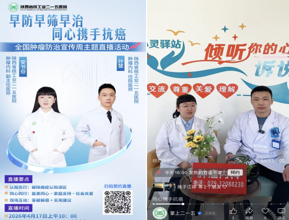 从基层义诊到线上科普,从患教互动到学术引领,肿瘤内科始终将肿瘤防治关口前移,让科学防癌理念深入人心。未来,医院将继续以学科建设为支撑,以群众健康需求为导向,常态化开展肿瘤早筛早诊早治工作,推动优质医疗资源精准下沉,用专业与担当守护一方百姓安康,为健康咸阳、健康陕西、健康中国建设贡献二一五力量。