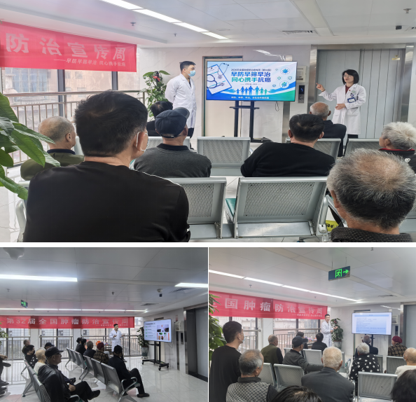 在科室大厅举办的患教活动中,医护人员与患者及家属面对面交流,系统讲解肿瘤防治知识、康复护理要点,耐心解答疑虑,帮助大家消除认知误区与心理焦虑,传递科学抗癌、积极面对的正能量。