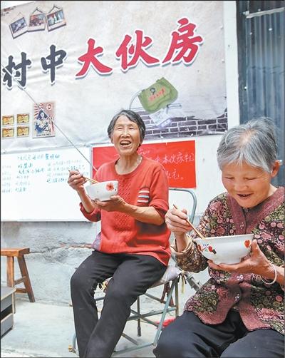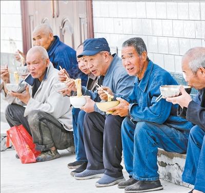 图王村村民在吃午餐。