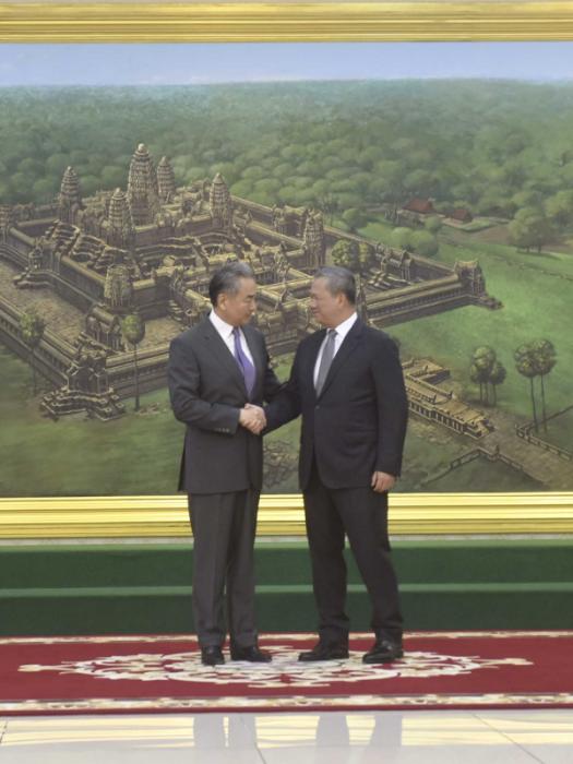 王毅说,中方愿同柬方沿着两国老一辈领导人开辟的中柬友好之路坚定不移地走下去,把命运共同体理念落实到两国关系的各方面。双方要保持高层交往,共同推进“工业发展走廊”“鱼米走廊”建设,助柬提升自主发展能力。跨境赌诈危害人民生命财产安全,要坚决打击,彻底铲除。双方要坚定在国际多边事务中相互支持,以中柬战略协作和战略韧性应对外部严峻挑战,携手维护公平正义。