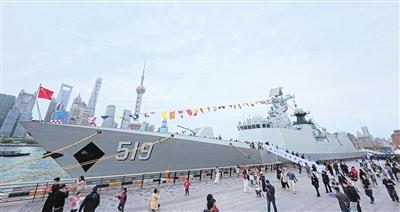 今年4月23日是人民海军成立77周年纪念日。近日,海军阜阳舰、千岛湖舰悬挂满旗,亮相上海港国际客运中心码头,迎接各界群众登舰参观,庆祝人民海军成立77周年。