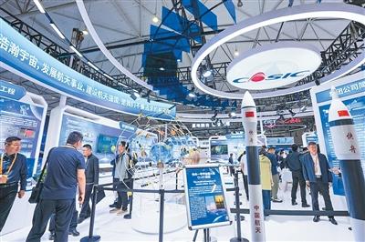 在第十一个“中国航天日”主场活动上,观众参观航天科普展览。