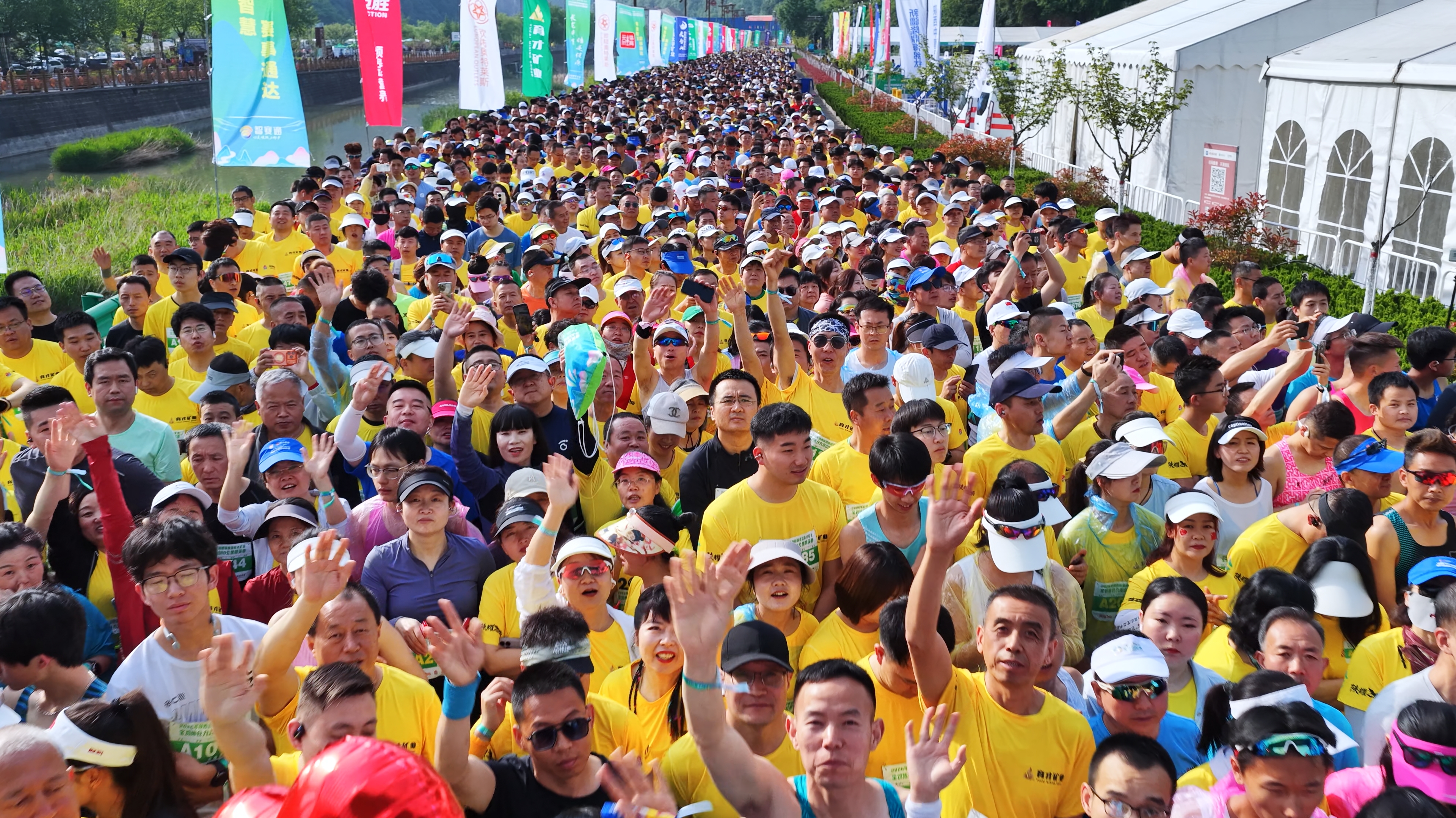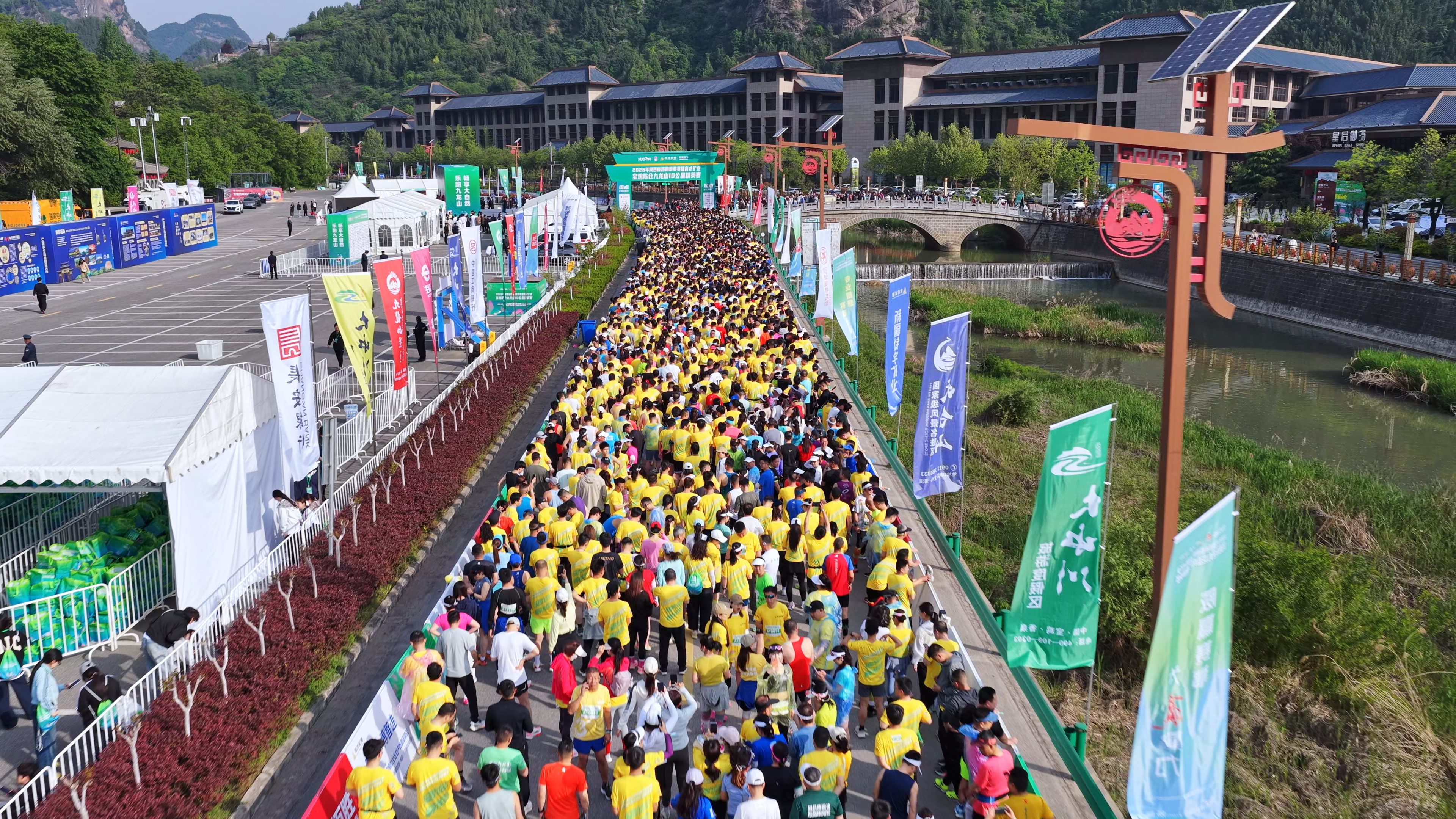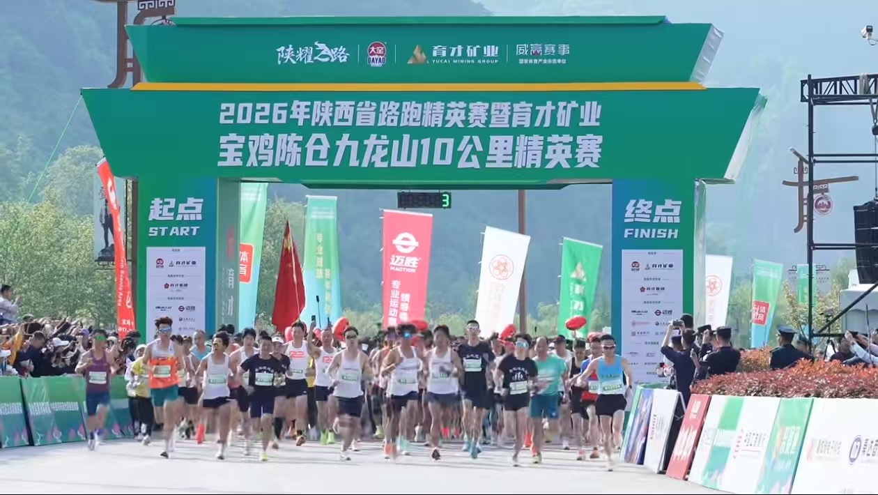 乐跑九龙山,畅享大自然。4月26日上午9时,2026年陕西省路跑精英赛暨育才矿业宝鸡陈仓九龙山10公里精英赛在宝鸡市陈仓区九龙山景区准时鸣枪。5000名跑者奔涌而出,矫健身姿与赭红丹霞、苍翠山峦交相辉映,一场短距离路跑角逐在春日暖阳下火热启幕。