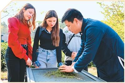 近日,外国游客在安徽省黄山市祁门县体验祁门红茶传统手工制作技艺。程启群摄(人民图片)