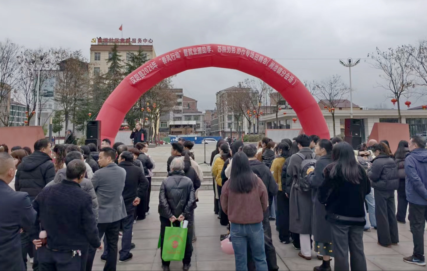 2月27日(农历正月十一),新春气息依旧浓郁。汉阴县2026年“春风行动”暨就业援助季、苏陕劳务协作专场招聘会(涧池分会场)在涧池镇红色文化广场火热举行。