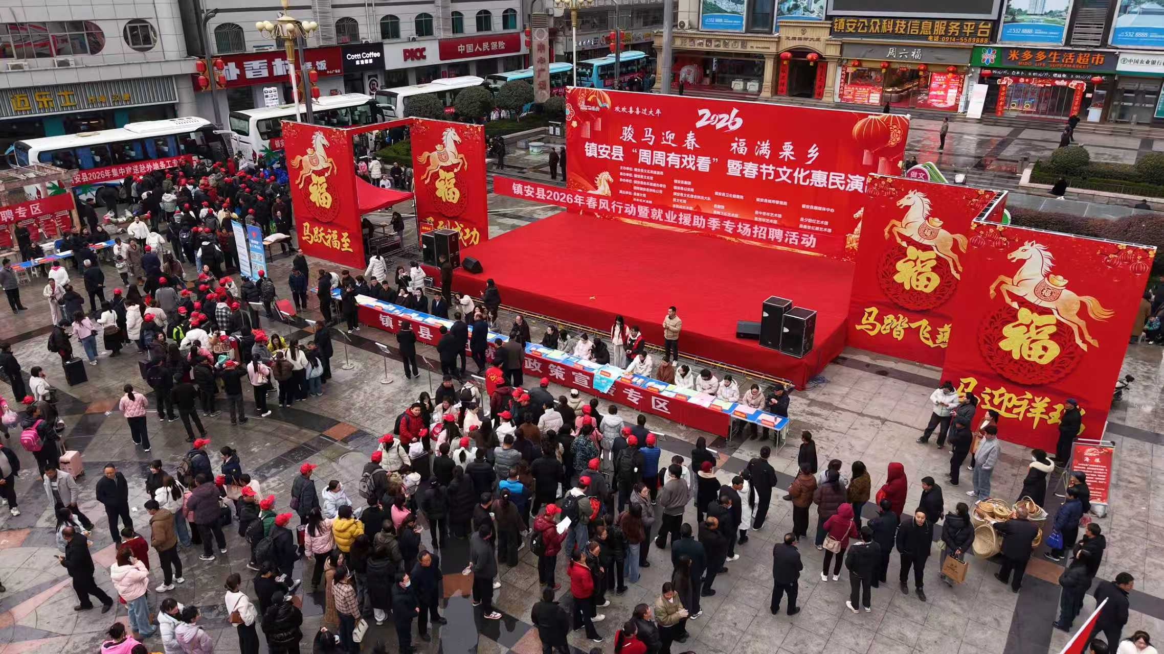2月26日,镇安县2026年“春风行动暨就业援助季”专场招聘会在县城中心广场火热开启。
